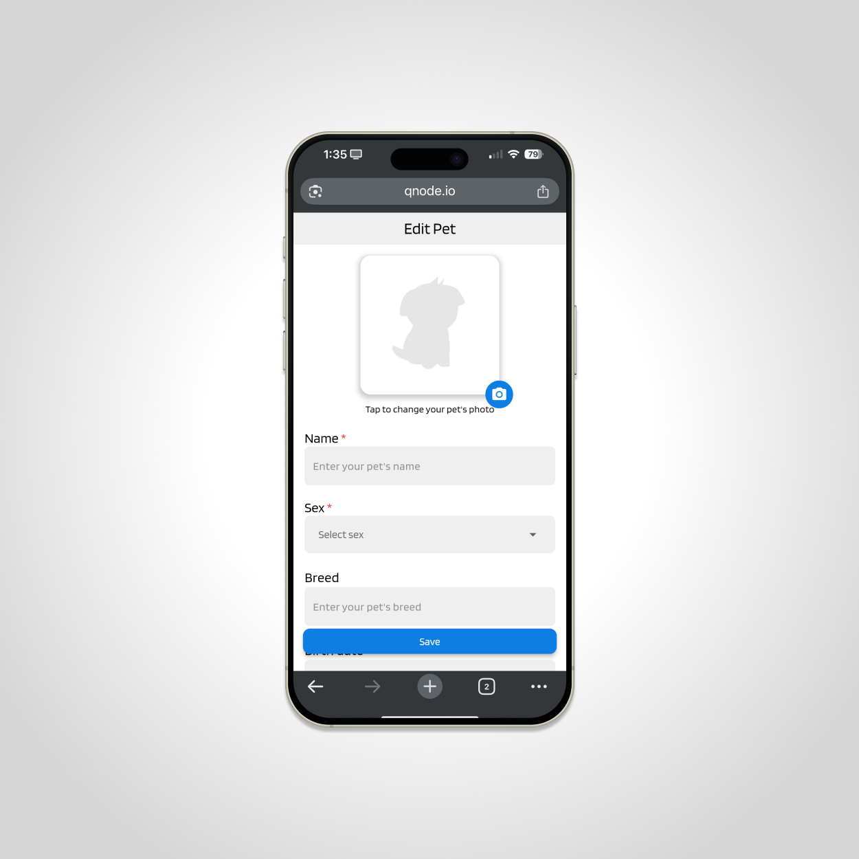 Once you're logged in, your QNode will automatically link to your account and prompt you to set up your pet’s profile.